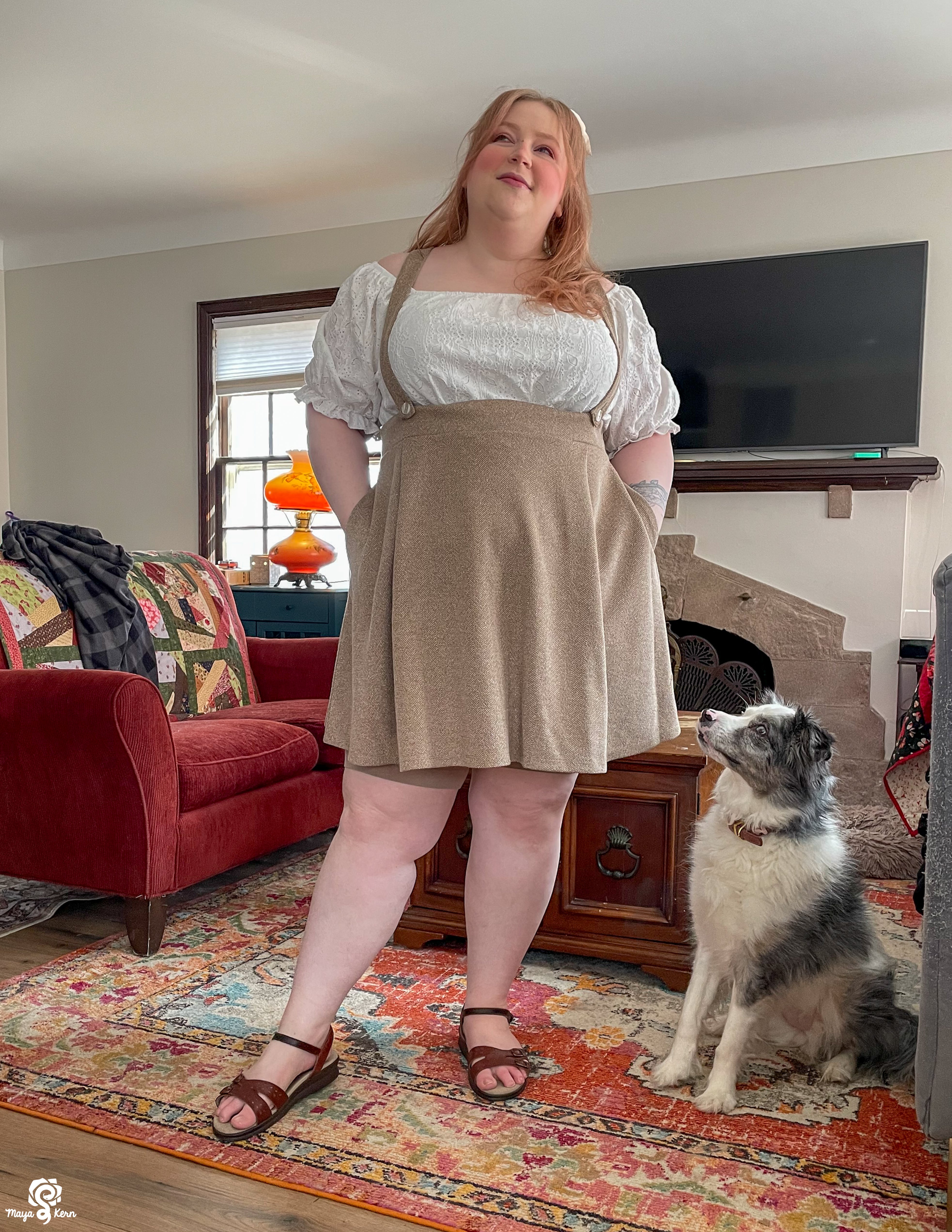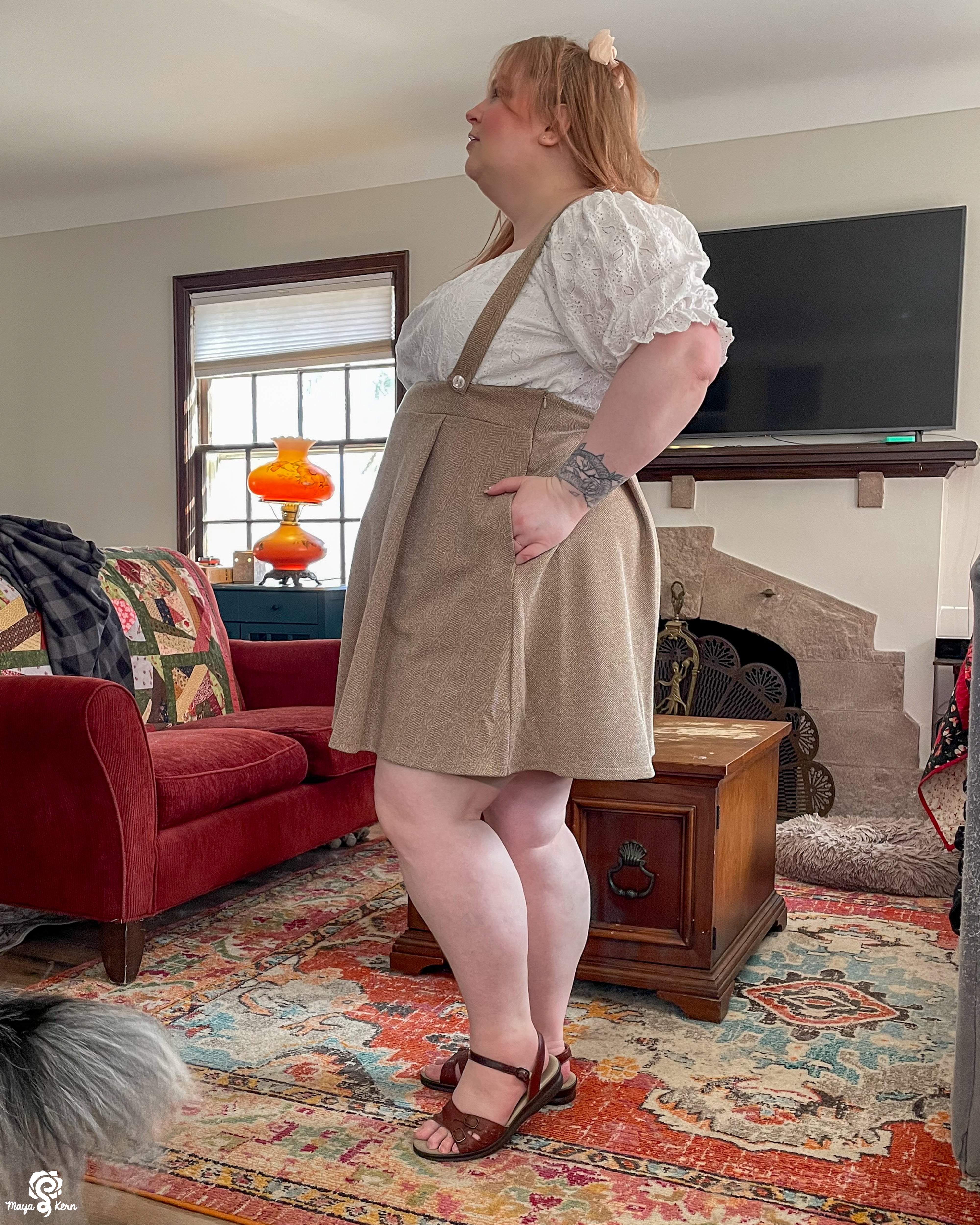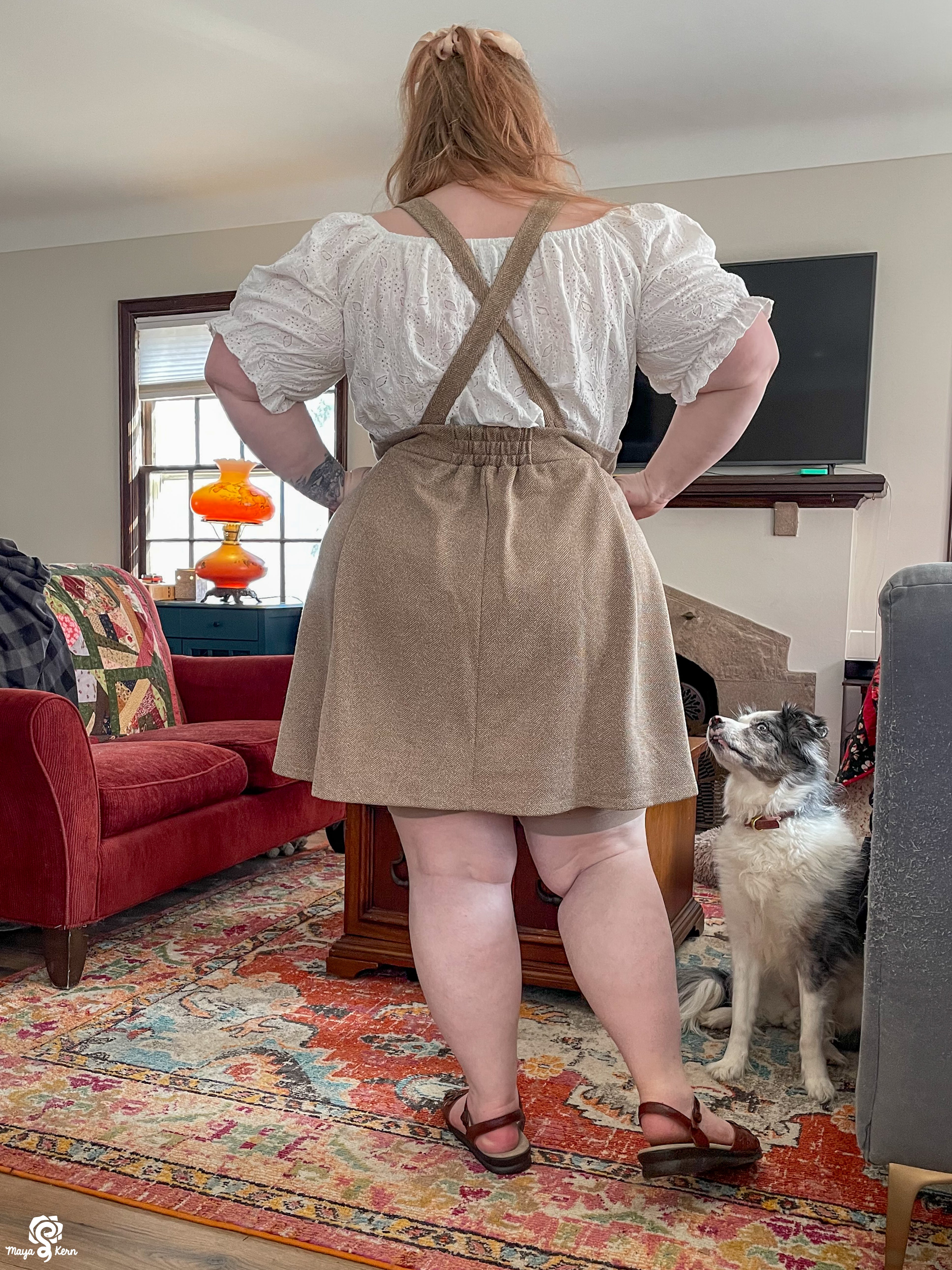 A super cute and comfortable suspender skirt that's perfect for walks in the park, crafting days with friends, or ravenously devouring an entire baguette in the span of 5 minutes.