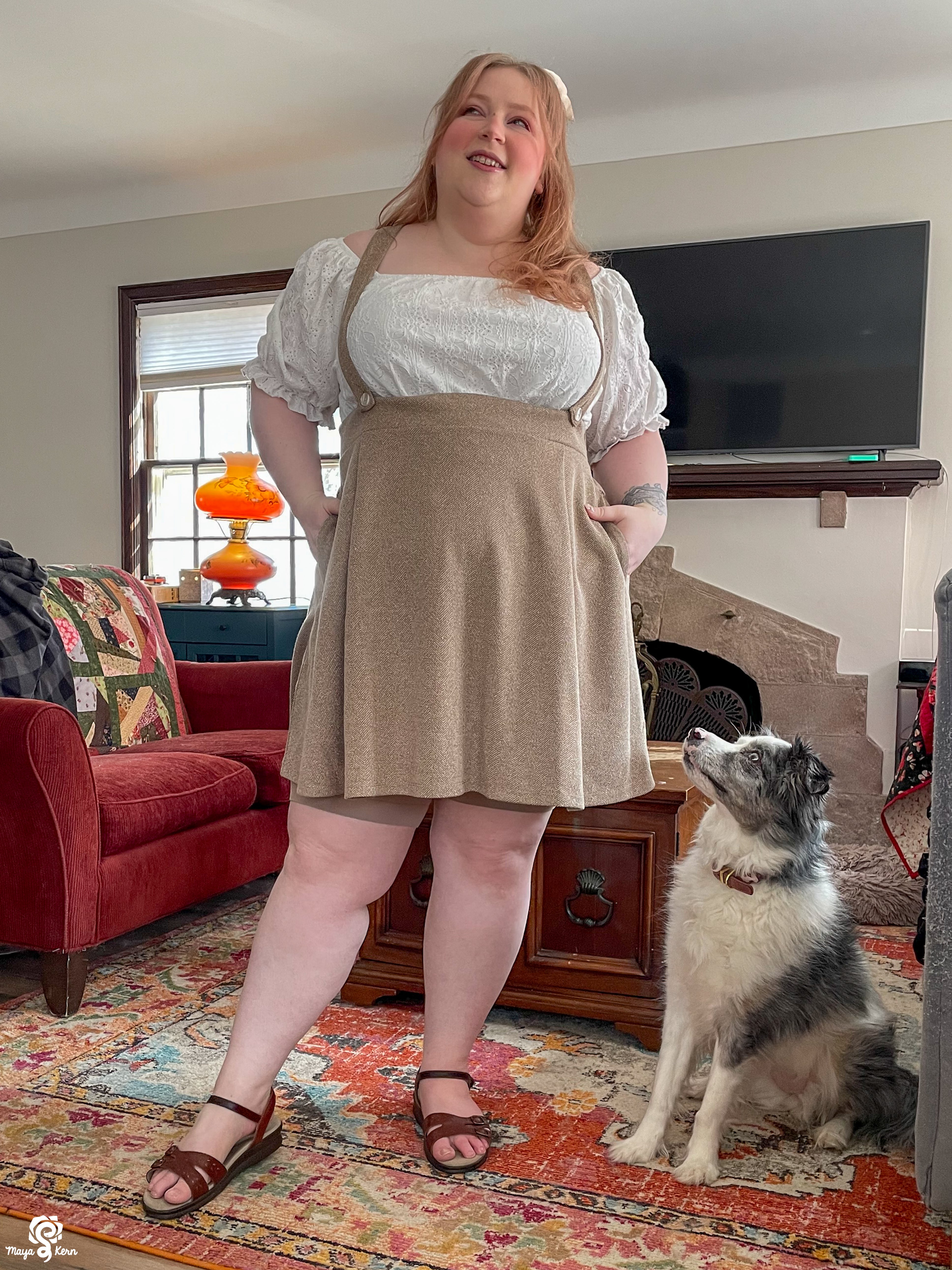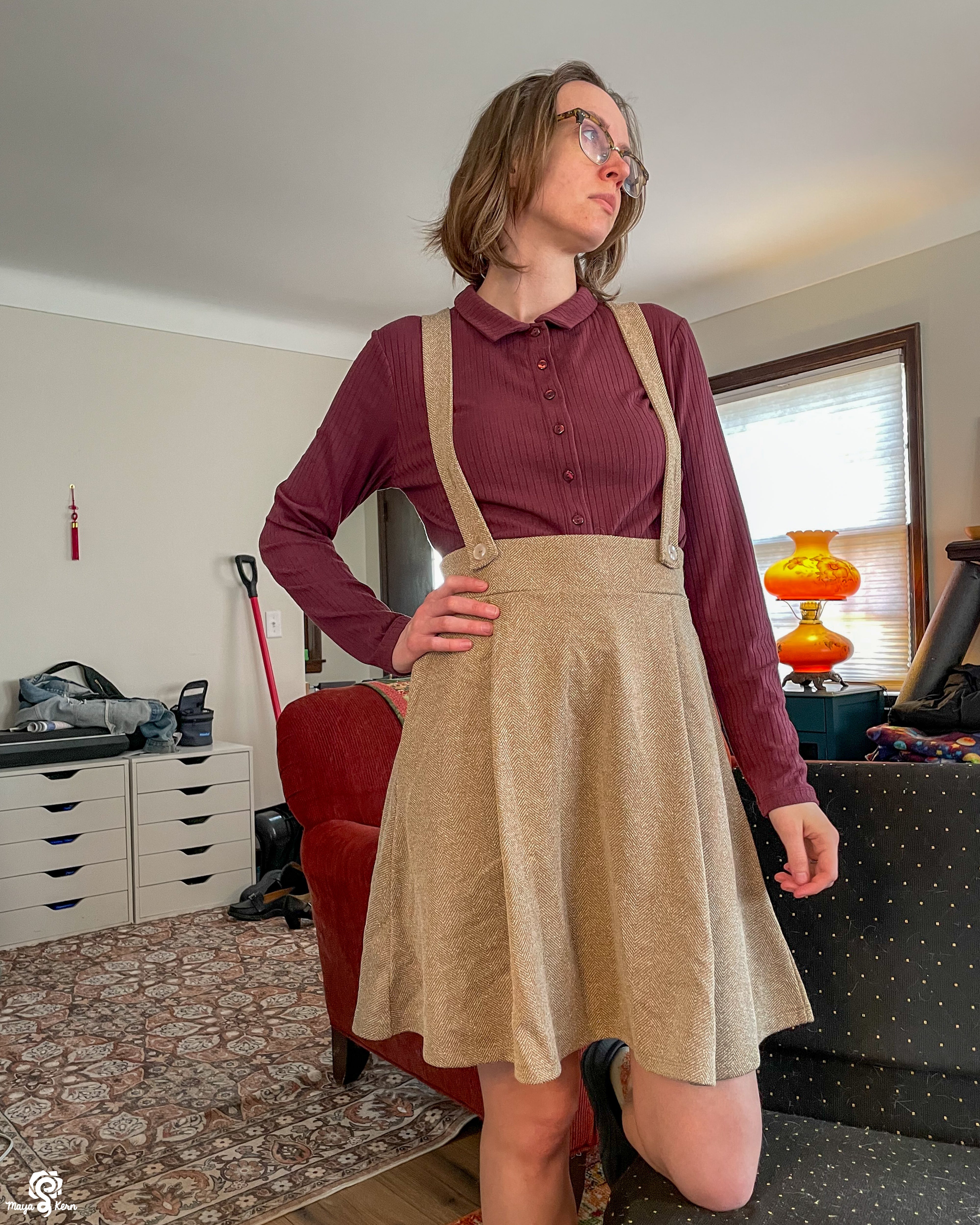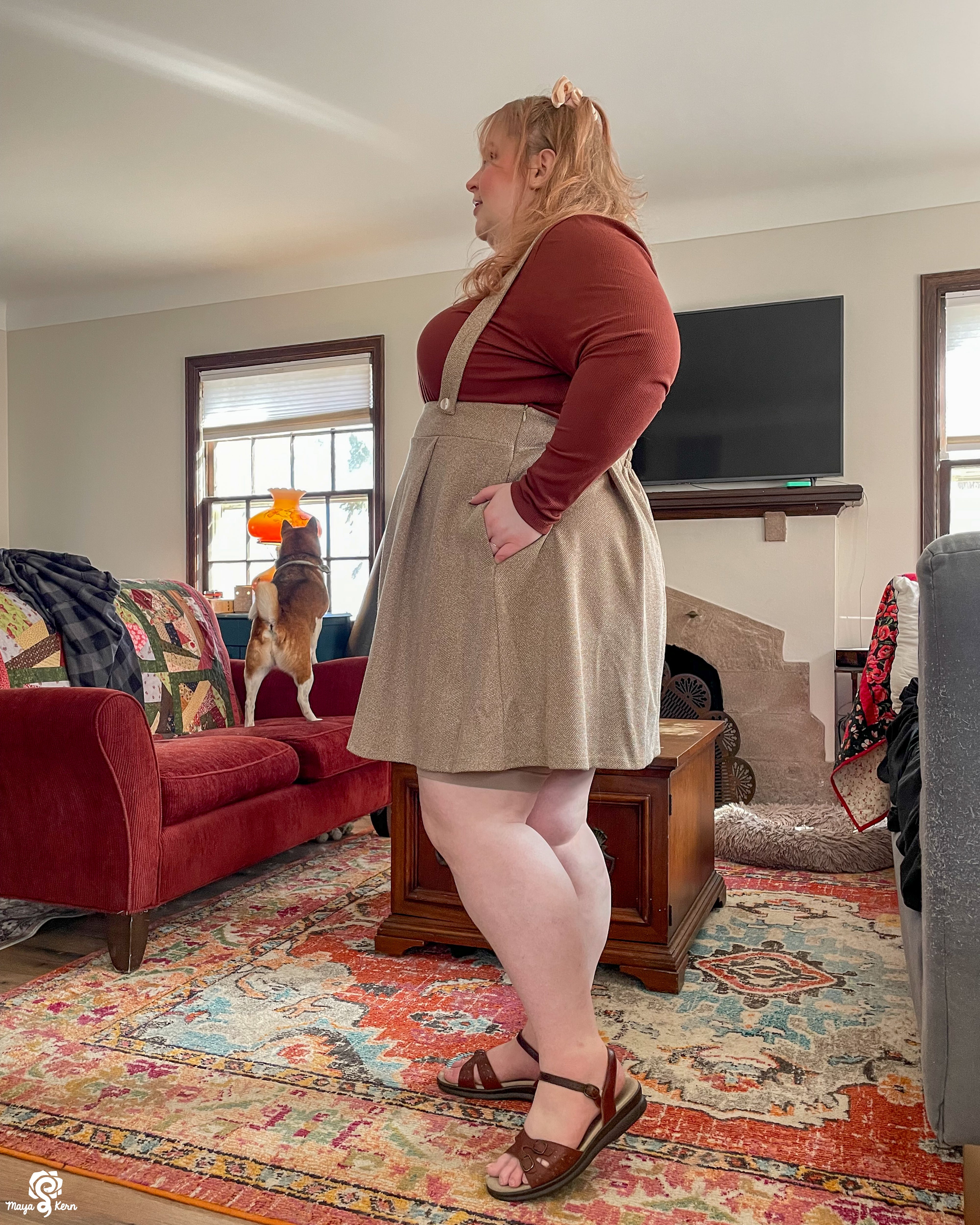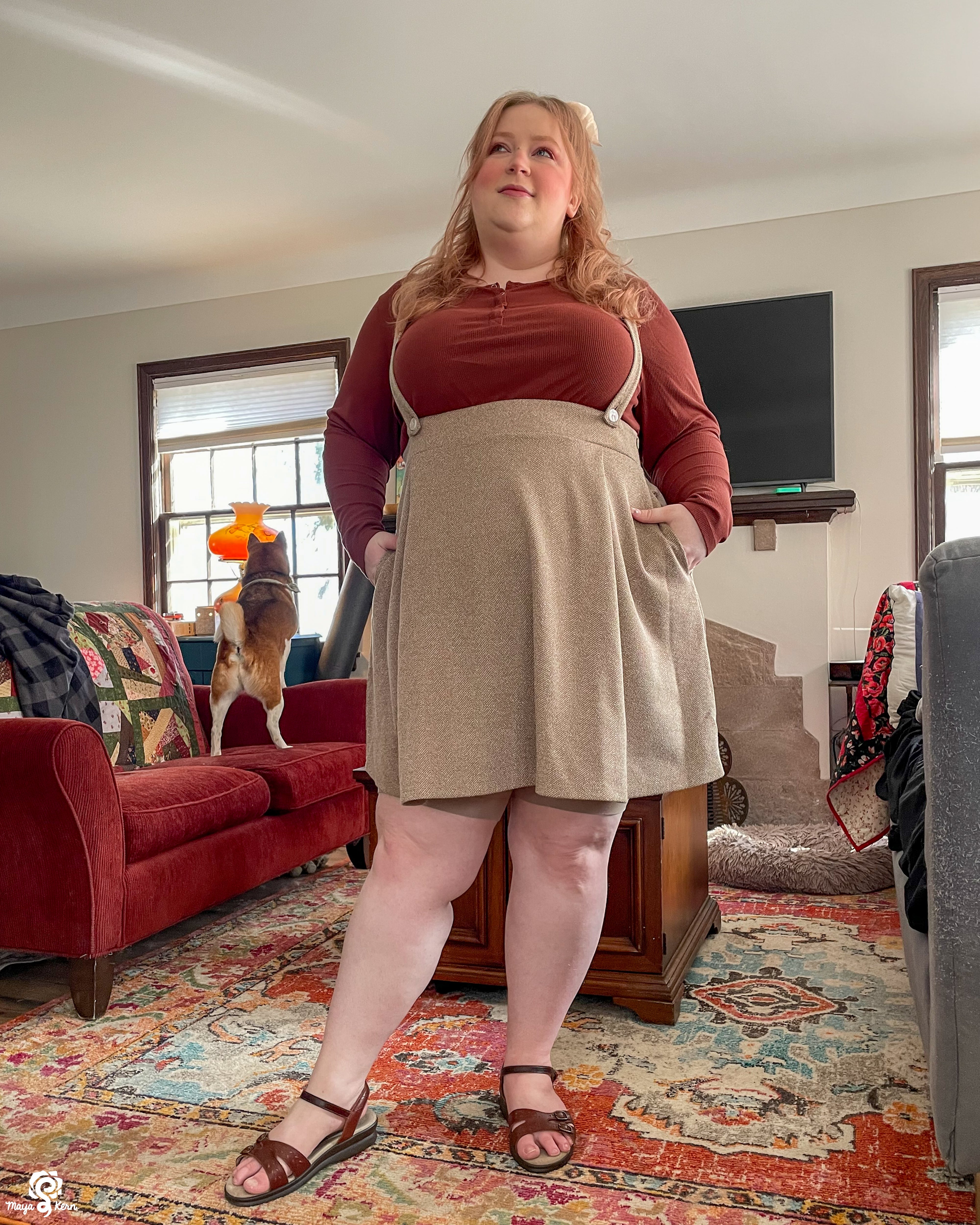 A super cute and comfortable suspender skirt that's perfect for walks in the park, crafting days with friends, or ravenously devouring an entire baguette in the span of 5 minutes.