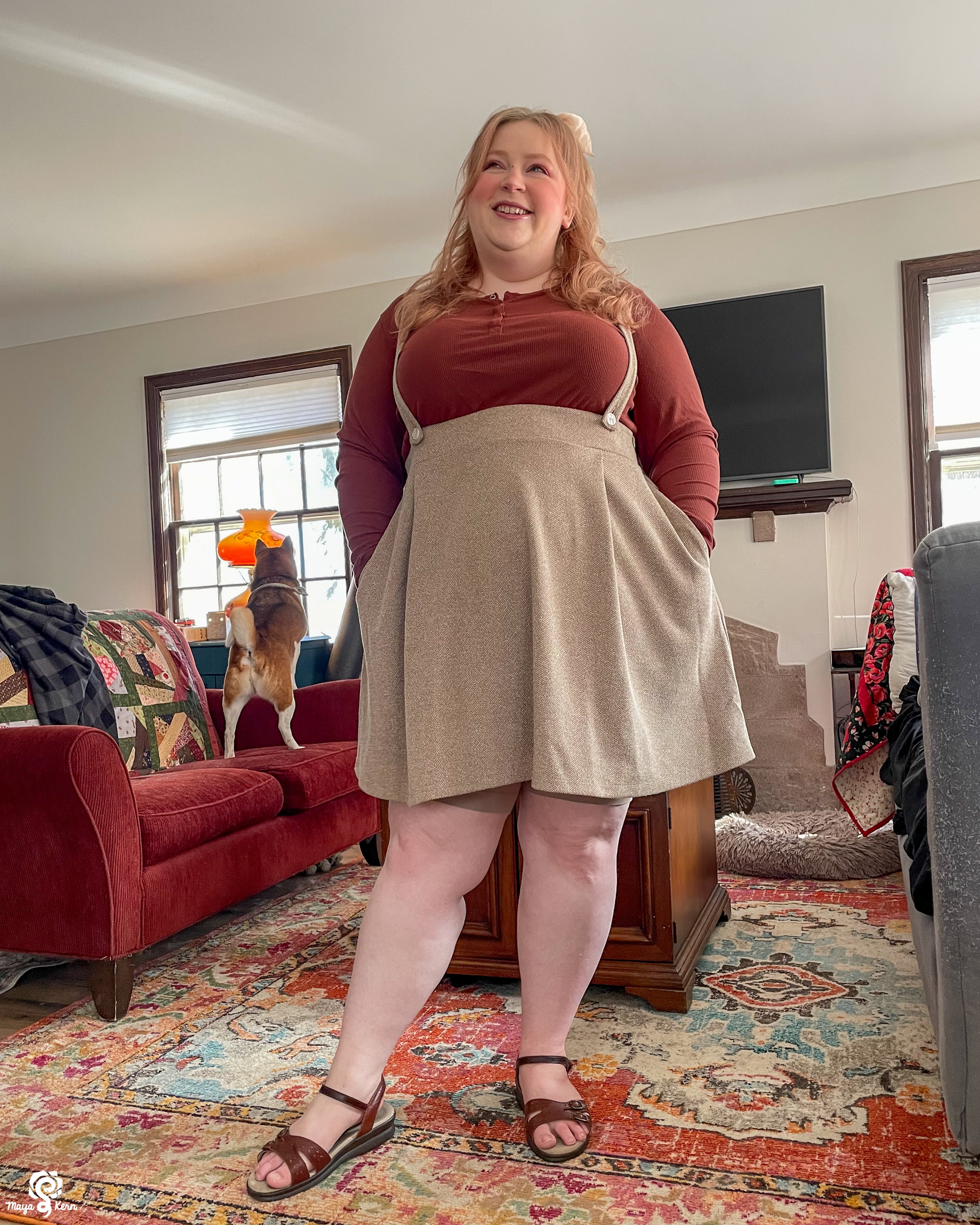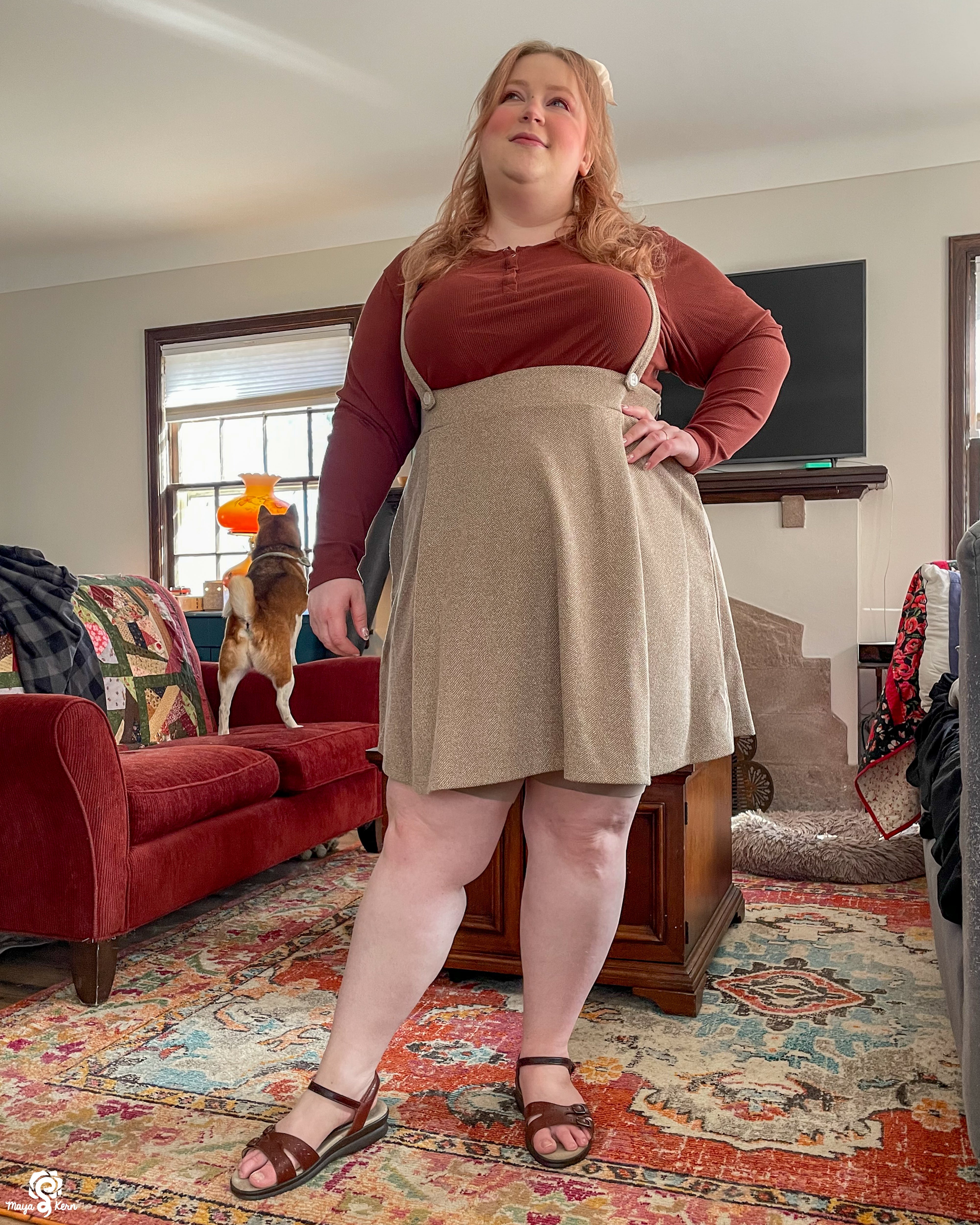 The Fawn skirt features a soft brown and white tweed-like pattern that is the perfect addition to any cottagecore or light academia wardrobe.
