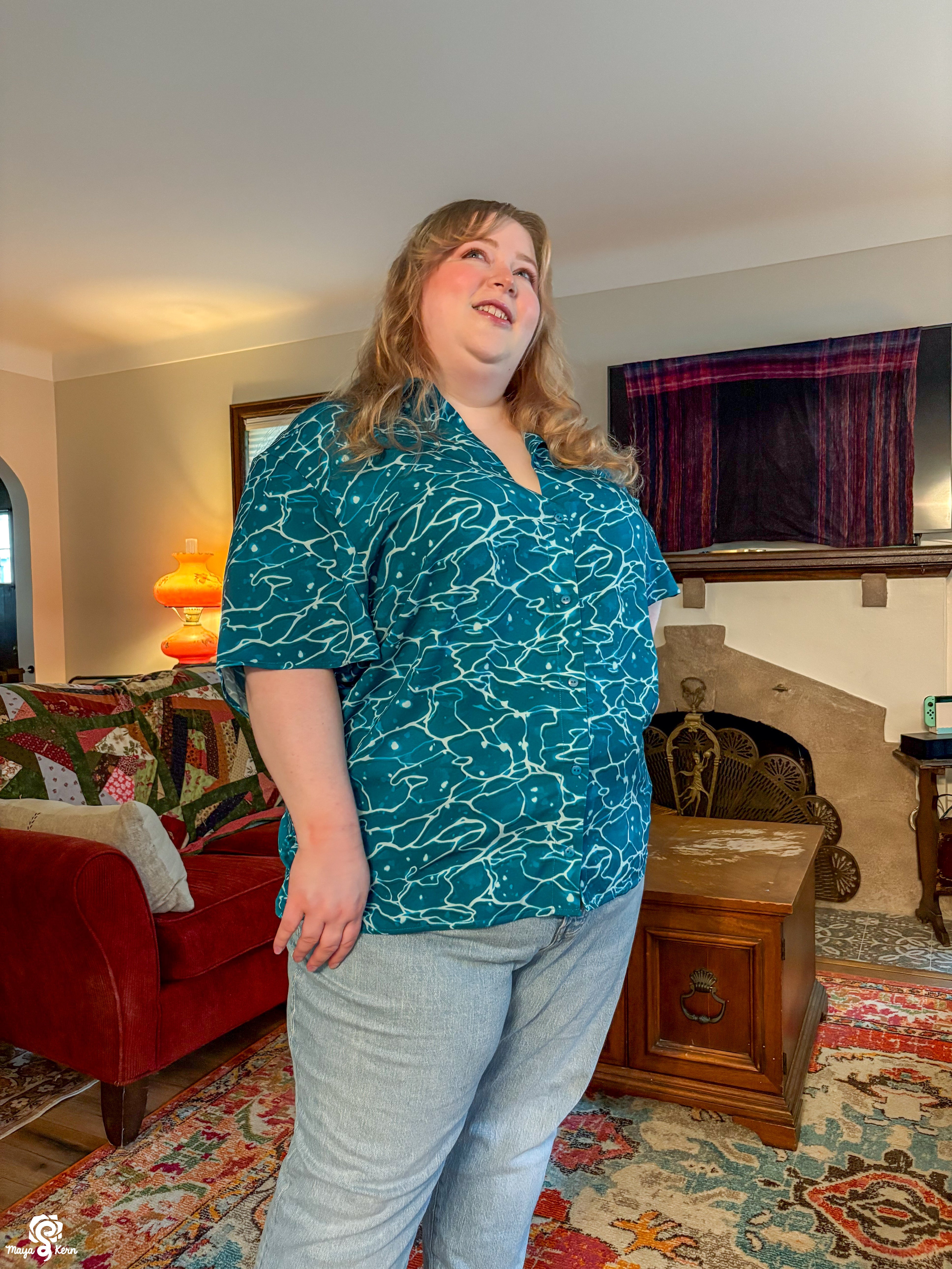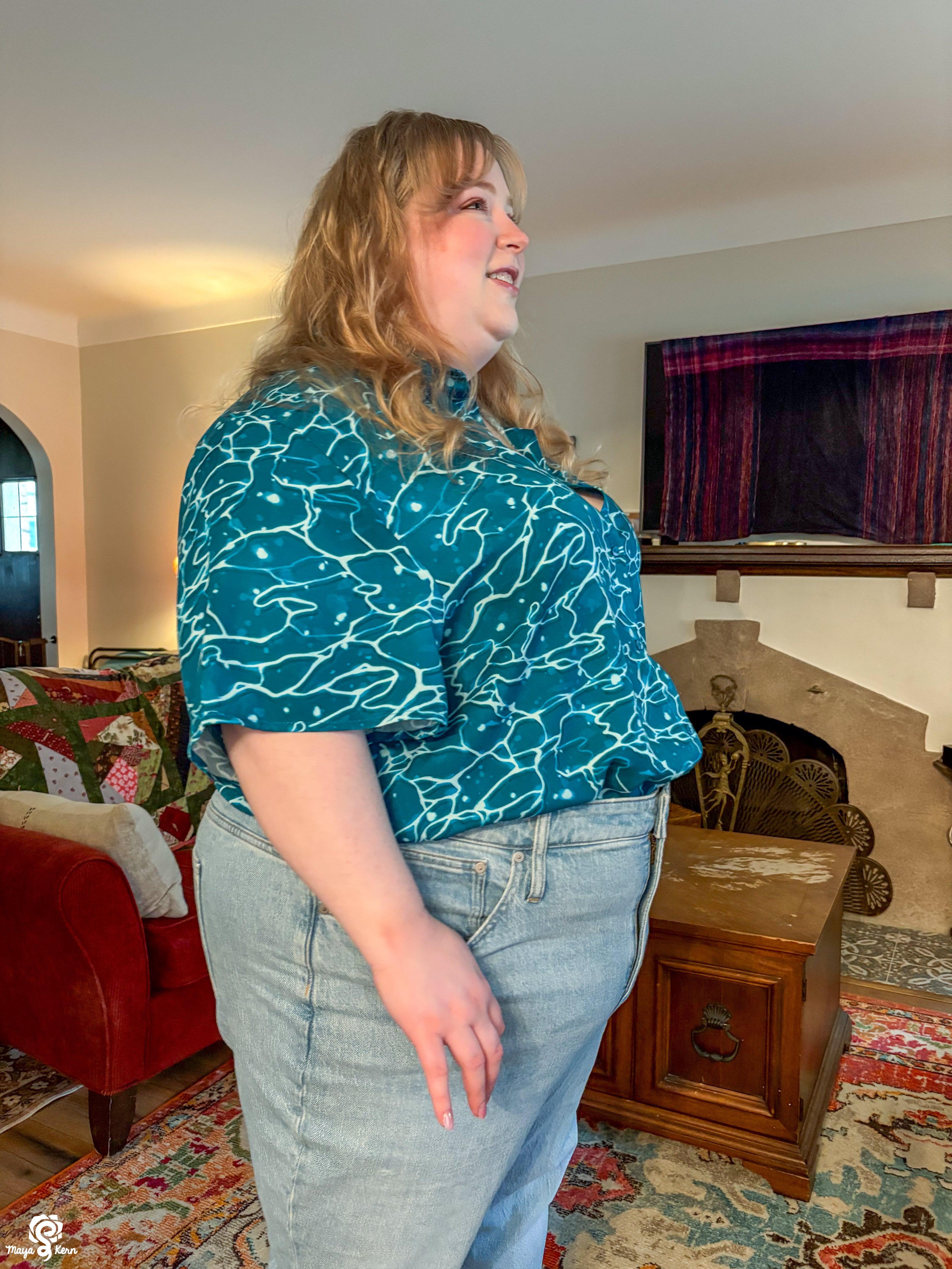 A short sleeved button-up shirt featuring my Ocean design. This pattern depicts the surface of water and its vibrant azure color is reminiscent of the beautiful tropical ocean or a pool.